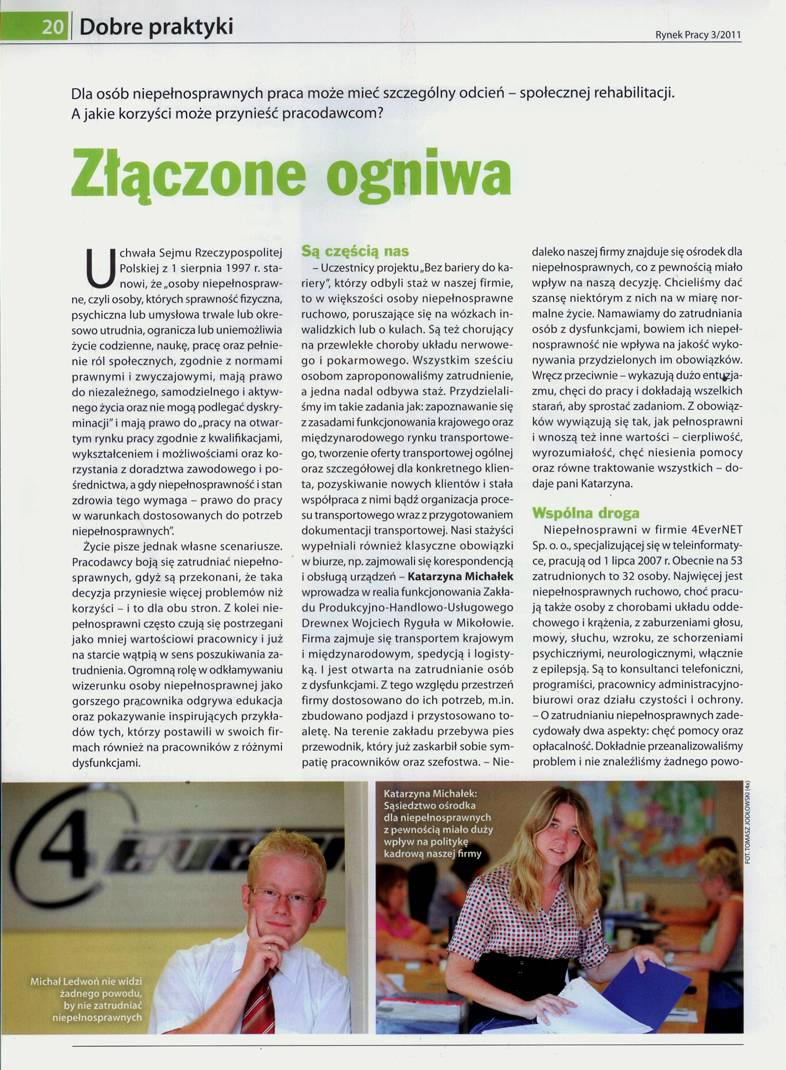 Nie bez znaczenia jest dla nas również aktywne zaangażowanie w pomoc osobom niepełnosprawnym i poszukującym pracy.